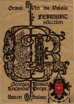 Créations d'étiquettes de vins (Spécialités) réalisées pour Georges ROSSET, Vigneron à Saxon.